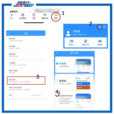 Κατεβάστε την εφαρμογή 12306, μεταβείτε στο "Εγώ (στο κάτω μέρος) → "Ρυθμίσεις" → "αλλαγή έκδοσης" → επιλέξτε Αγγλικά για εναλλαγή στην αγγλική έκδοση.