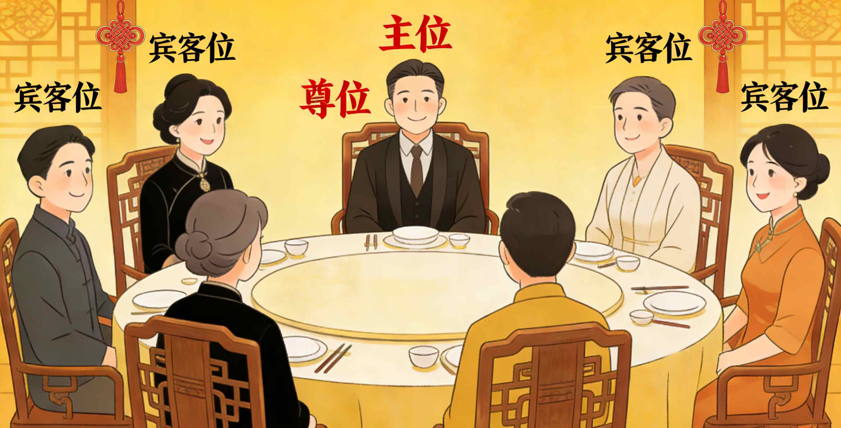Στα παραδοσιακά κινέζικα καθίσματα, η πιο τιμητική θέση συνήθως βλέπει προς το νότο, που βρίσκεται στη βόρεια πλευρά του τραπεζιού.